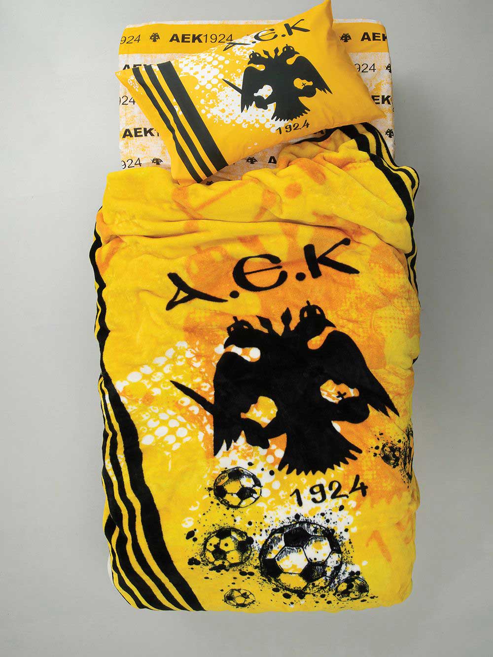 Μονή βελουτέ κουβέρτα από την σειρά Official Team Aek 1924 Collection, της εταιρίας Palamaiki. Ζεστή και βελούδινα απαλή, στα χρώματα της αγαπημένης σας ομάδας, θα σας χαρίσει απολαυστικές στιγμές χαλάρωσης.Οι σωστοί φίλαθλοι δείχνουν την αγάπη τους για την ομάδα τους και στο σπίτι και όχι μόνο στο γήπεδο. Ντύστε το υπνοδωμάτιό σας με τα χρώματα της αγαπημένης σας ομάδας και ζεσταθείτε με την βελουτέ κουβέρτα του ΑΕΚ!