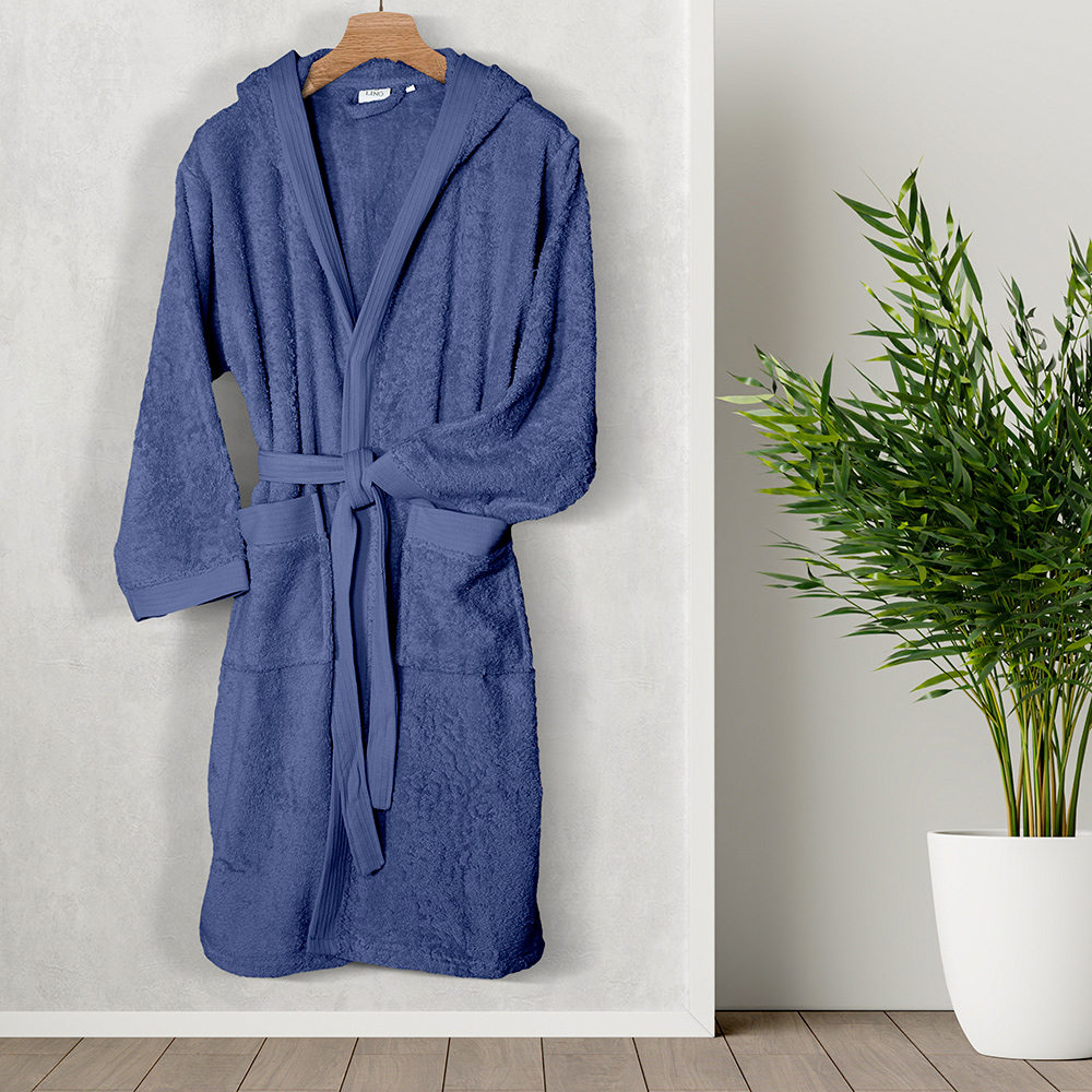 Μπουρνούζι Erma από την νέα συλλογή της εταιρείας Lino Home. Το μπουρνούζι της σειράς Erma διατίθεται σε 8 μοναδικές αποχρώσεις για να επιλέξετε αυτή που σας ταιριάζει καλύτερα ενώ στην επιφάνειά του έχει απαλή πετσετέ υφή και όμορφο σχέδιο στο γιακά. Το μπουρνούζι έχει κουκούλα για εύκολο στέγνωμα των μαλλιών μετά το μπάνιο και ζώνη για να μένει σταθερό στο σώμα. Είναι κατασκευασμένο από 100% βαμβάκι πενιέ βάρους 500gsm για μέγιστη απορροφητικότητα και απαλότητα. Τα ανεξίτηλα χρώματα των μπουρνουζιών Erma τα καθιστά την ιδανική επιλογή για καθημερινή χρήση, ενώ ο σχεδιασμός τους τα καθιστά ανθεκτικά στο χρόνο και στις πλύσεις. Είναι συσκευασμένο σε διάφανη συσκευασία με φερμουάρ για να το προσφέρετε ακόμα και ως δώρο. Προτείνεται πλύσιμο έως τους 60oC και σιδέρωμα σε μέτριες θερμοκρασίες. Απαγορεύεται η χρήση χλωρίου ή λευκαντικού.