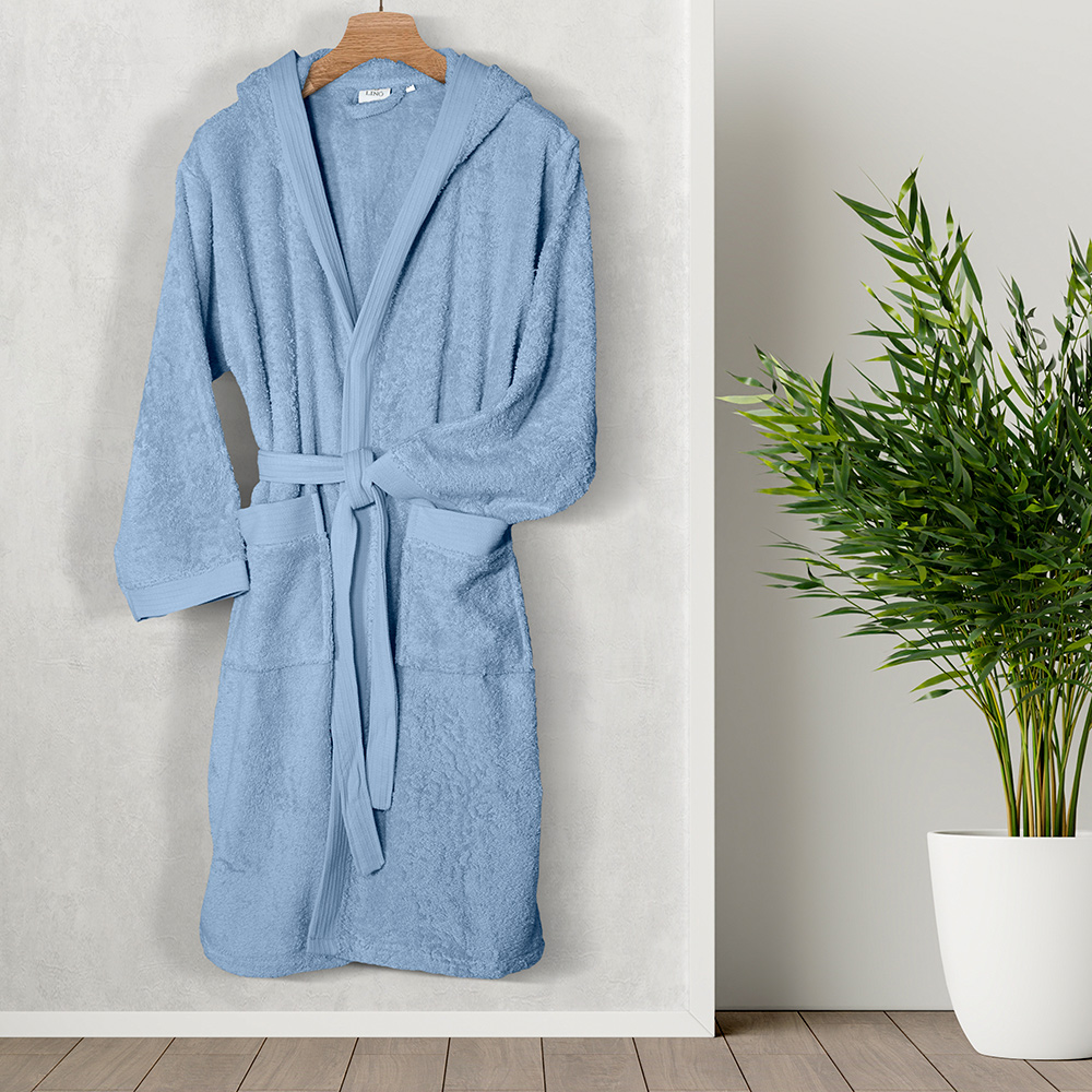 Μπουρνούζι Erma από την νέα συλλογή της εταιρείας Lino Home. Το μπουρνούζι της σειράς Erma διατίθεται σε 8 μοναδικές αποχρώσεις για να επιλέξετε αυτή που σας ταιριάζει καλύτερα ενώ στην επιφάνειά του έχει απαλή πετσετέ υφή και όμορφο σχέδιο στο γιακά. Το μπουρνούζι έχει κουκούλα για εύκολο στέγνωμα των μαλλιών μετά το μπάνιο και ζώνη για να μένει σταθερό στο σώμα. Είναι κατασκευασμένο από 100% βαμβάκι πενιέ βάρους 500gsm για μέγιστη απορροφητικότητα και απαλότητα. Τα ανεξίτηλα χρώματα των μπουρνουζιών Erma τα καθιστά την ιδανική επιλογή για καθημερινή χρήση, ενώ ο σχεδιασμός τους τα καθιστά ανθεκτικά στο χρόνο και στις πλύσεις. Είναι συσκευασμένο σε διάφανη συσκευασία με φερμουάρ για να το προσφέρετε ακόμα και ως δώρο. Προτείνεται πλύσιμο έως τους 60oC και σιδέρωμα σε μέτριες θερμοκρασίες. Απαγορεύεται η χρήση χλωρίου ή λευκαντικού.