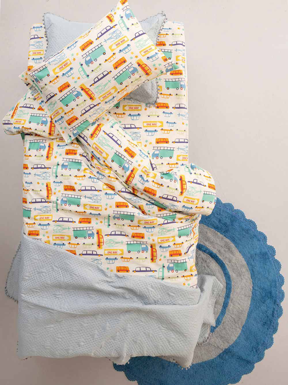 Σετ Σεντόνια Μονού Κρεβατιού από την εταιρεία Palamaiki. Το σετ σεντόνια My Kingdom ανήκει στην παιδική μας συλλογή και είναι διακοσμημένο με χαριτωμένα σχέδια που πρόκειται να ενδυναμώσουν τη φαντασία και τη δημιουργικότητα του παιδιού σας! Η σύνθεσή τους από 100% βαμβάκι και η πυκνότητα στις 144 κλωστές ανά ίντσα, τα καθιστούν την ιδανική επιλογή για όσους επιθυμούν ασύγκριτη απαλότητα και ευκολία στο σιδέρωμα χάρη στη σύνθεση και το ειδικό φινίρισμά τους. Προτείνεται πλύσιμο σε θερμοκρασίες έως 40oC και σιδέρωμα σε μέτριες θερμοκρασίες από την ανάποδη πλευρά. Απαγορεύεται η χρήση χλωρίου ή λευκαντικού.
